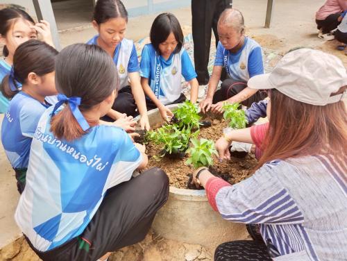 ทั้งนี้สำนักงานพัฒนาชุมชนอำเภอศรีเมืองใหม่ ได้มอบต้นพันธุ์ผักและเมล็ดพันธุ์ผัก พร้อมร่วมกันปลูกผักสวนครัวณ บริเวณสวนเศรษฐกิจพอเพียงของโรงเรียนบ้านหนองไผ่ ถือเป็นการส่งเสริมการปลูกผักสวนครัวเพื่อสร้างความมั่นคงทางด้านอาหาร และเป็นแหล่งเรียนรู้ในการปลูกผักสวนครัวของเด็กและเยาวชนอีกด้วย