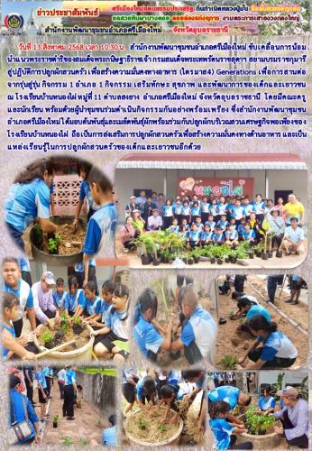 พช.ศรีเมืองใหม่ ขับเคลื่อนการน้อมนำแนวพระราชดำริของสมเด็จพระกนิษฐาธิราชเจ้า กรมสมเด็จพระเทพรัตนราชสุดาฯ สยามบรมราชกุมารี สู่ปฏิบัติการปลูกผักสวนครัว เพื่อสร้างความมั่นคงทางอาหาร (ไตรมาส4) Generations เพื่อการสานต่อจากรุ่นสู่รุ่น กิจกรรม 1 อำเภอ 1 กิจกรรม เสริมทักษะ สุขภาพ และพัฒนาการของเด็กและเยาวชน